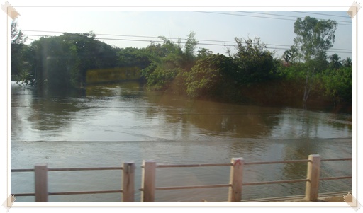 ช่วงที่รถแล่นผ่านบริเวณสะพานข้ามลำน้ำพอง เห็นบริเวณที่ถูกน้ำท่วมอย่างชัดเจนในหลายๆภาพที่ถ่ายมา